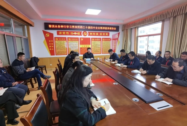 為全面深入學(xué)習(xí)貫徹黨的二十屆四中全會(huì)精神,進(jìn)一步增進(jìn)共識(shí)、凝聚力量,推動(dòng)全會(huì)精神與企業(yè)改革發(fā)展深度融合、落地見(jiàn)效,12月26日,山東黎濱水務(wù)有限公司黨總支組織召開(kāi)學(xué)習(xí)貫徹黨的二十屆四中全會(huì)精神宣講報(bào)告會(huì)。濱州水務(wù)發(fā)展集團(tuán)黨委副書(shū)記王魯東同志作專題宣講,黎濱水務(wù)黨總支書(shū)記王志強(qiáng)主持會(huì)議,公司班子成員、中層正副職及黨支部黨員代表參加會(huì)議。